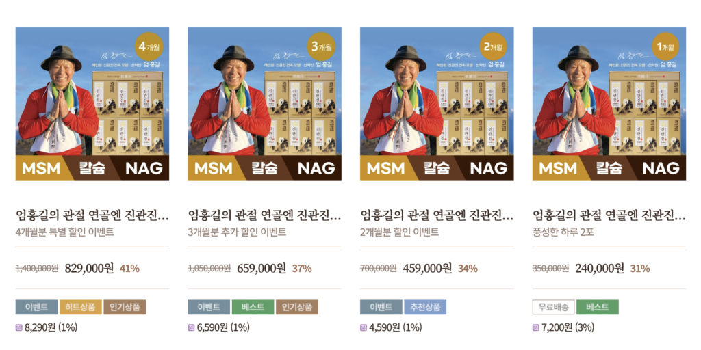 현재 홈페이지에서는 이벤트, 추가 구매 이벤트를 진행중이어서 조금 더 저렴한 가격에 구매할 수 있습니다. 개별로 판매하는 것이 아니라 1개월분씩 기준으로 판매 되고 있습니다.