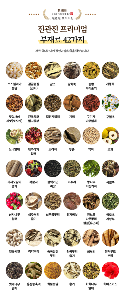 위에서 설명드린 진관진에 포함된 성분들은 아래와 같은 효과를 우리에게 제공합니다.
